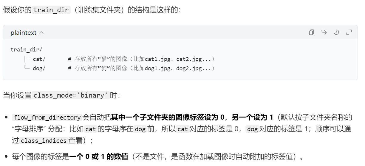 解释一下class_mode="xxx"这个参数,是根据目录层级的结构来给自动输入的图片打标签