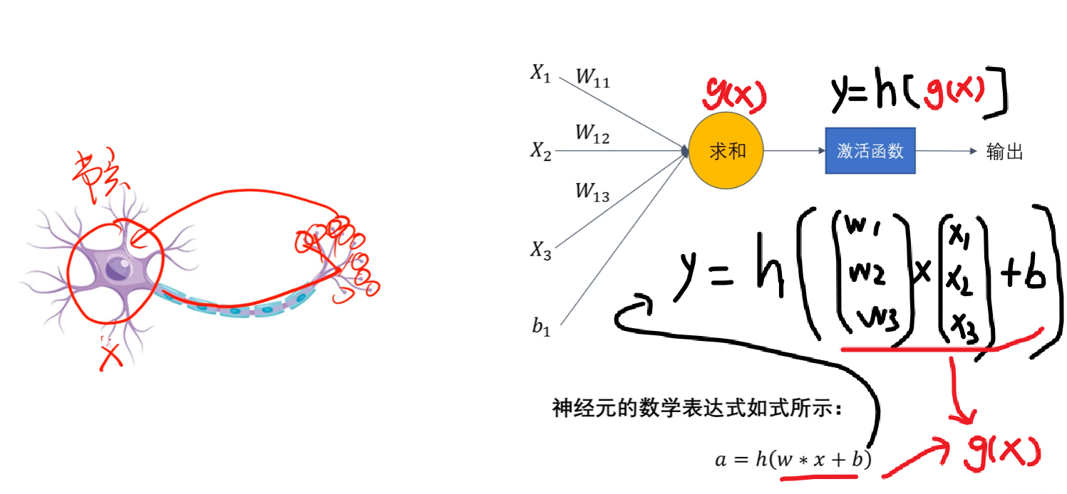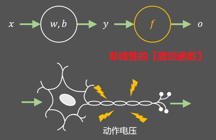 如果我们再叠加一个【非线性的函数】,像我们高中学过的 “套娃函数” 一样:y = h( g(x) ),那会得到一个更加接近神经元的函数,这个【后面叠加的h(x)】就称作【激活函数】!!!