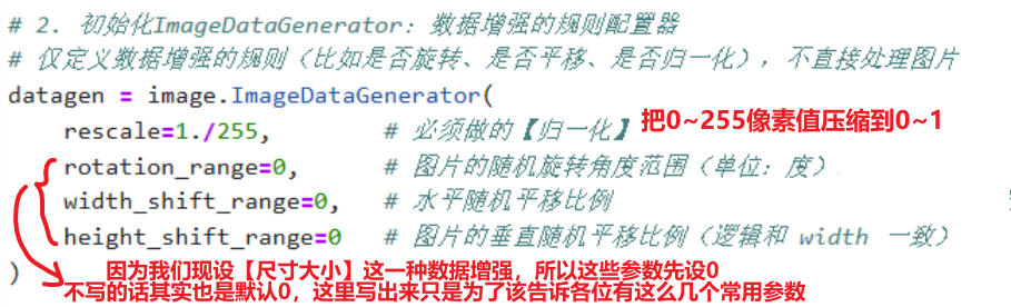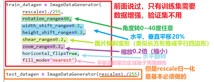 其实这些数据增强的操作区别就是在【ImageDataGenerator】设置