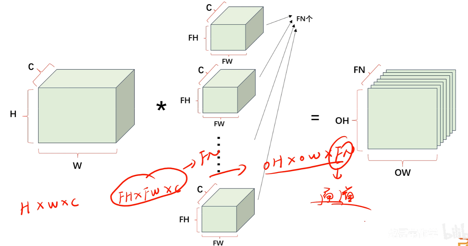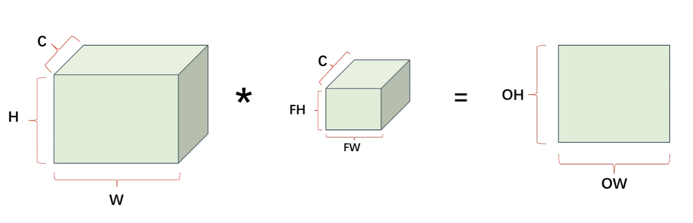 - 可以看到公式里一共有的变量是:输入特征图的高H、输入特征图的宽W、填充padding、步长stride、Filter的高FH、Filter的宽FW,这就是我们重点要调的参数