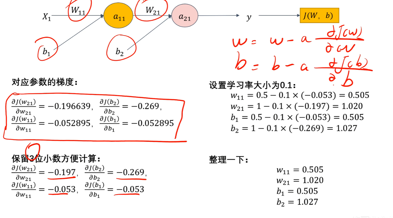 3)反向传播的【更新参数w、b】