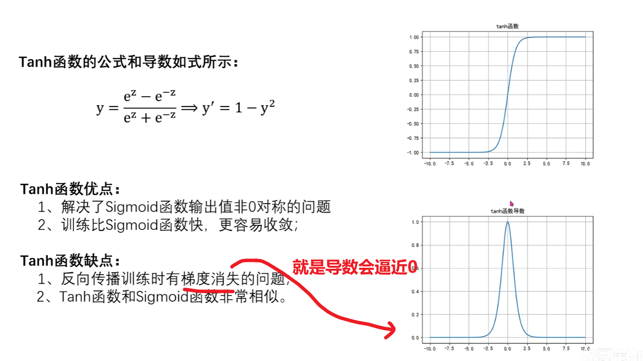 2、值域是在[-1 ~ 1],比sigmoid大,而且关于0对称(sigmoid是关于0.5对称)