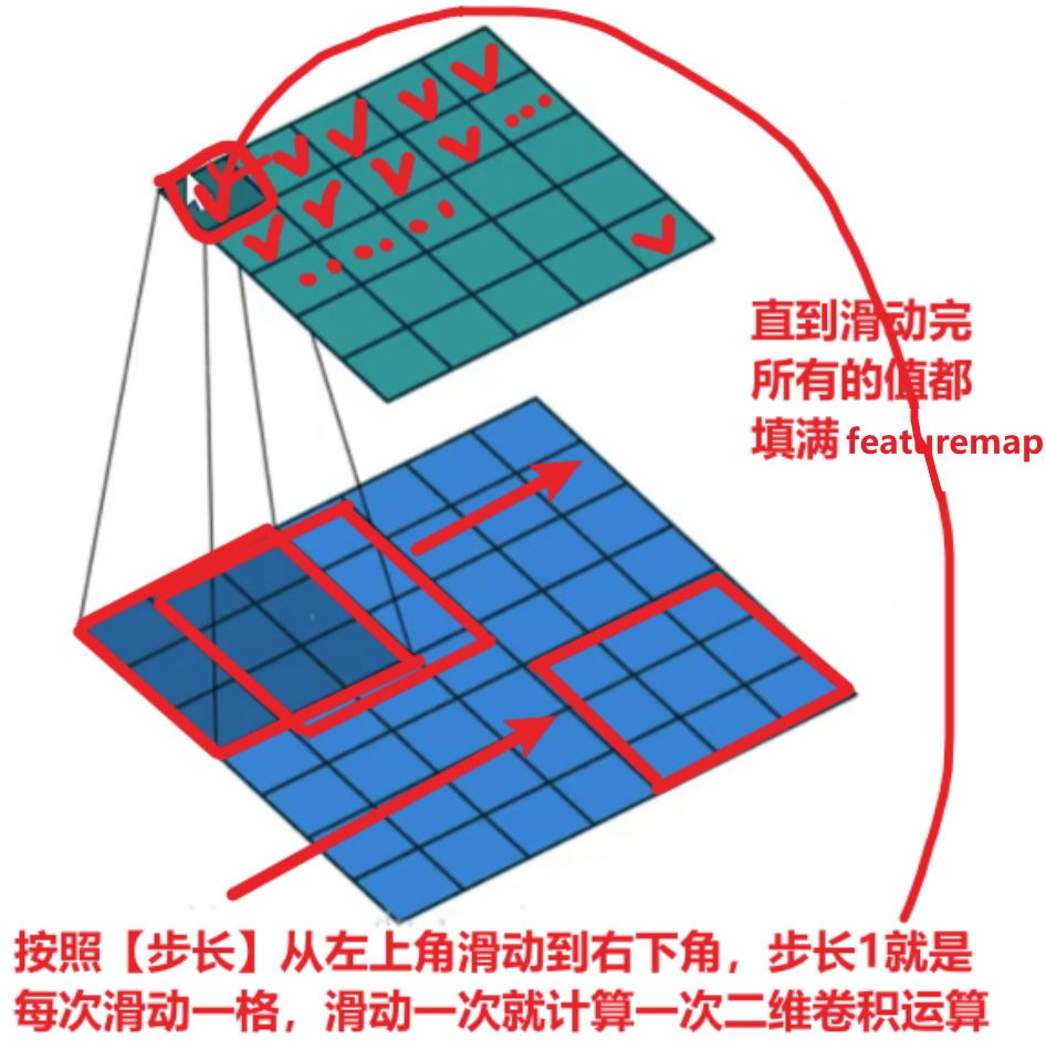 而stride步长则是调整featuremap获取到的特征值大小,如果步长太大,图像几步就被滑动结束,那么滑动一次给featuremap记录一次值,就会导致featuremap的值很小,而步长太大,图像要很多步才滑动结束,featuremap的值会很大