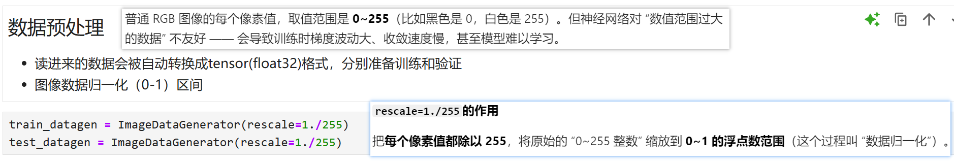 图像数据归一化:分别把训练集核测试集放到【图像数据生成器】进行压缩