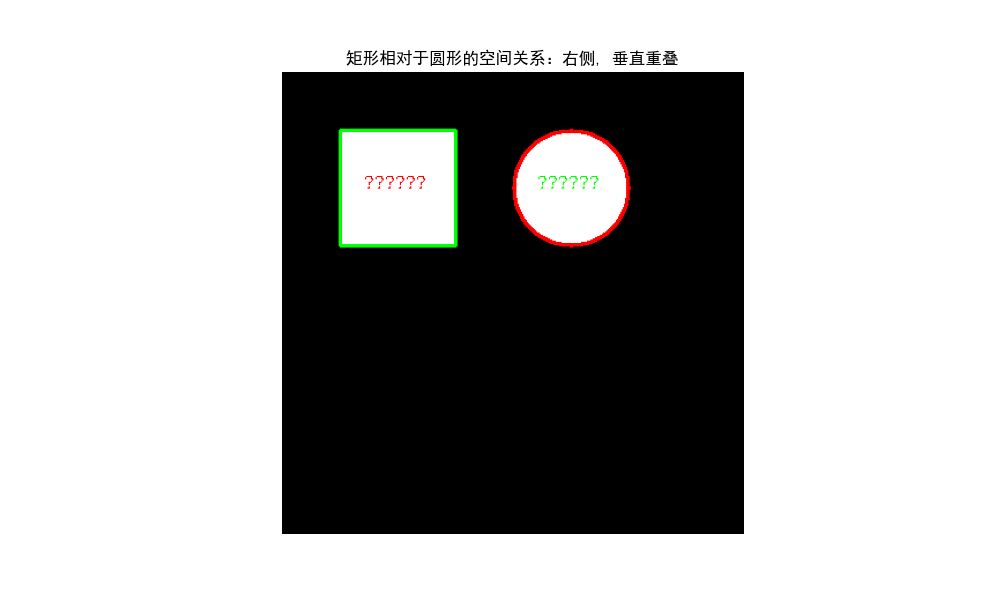 print(f"矩形相对于圆形的空间关系:{', '.join(relations)}")
