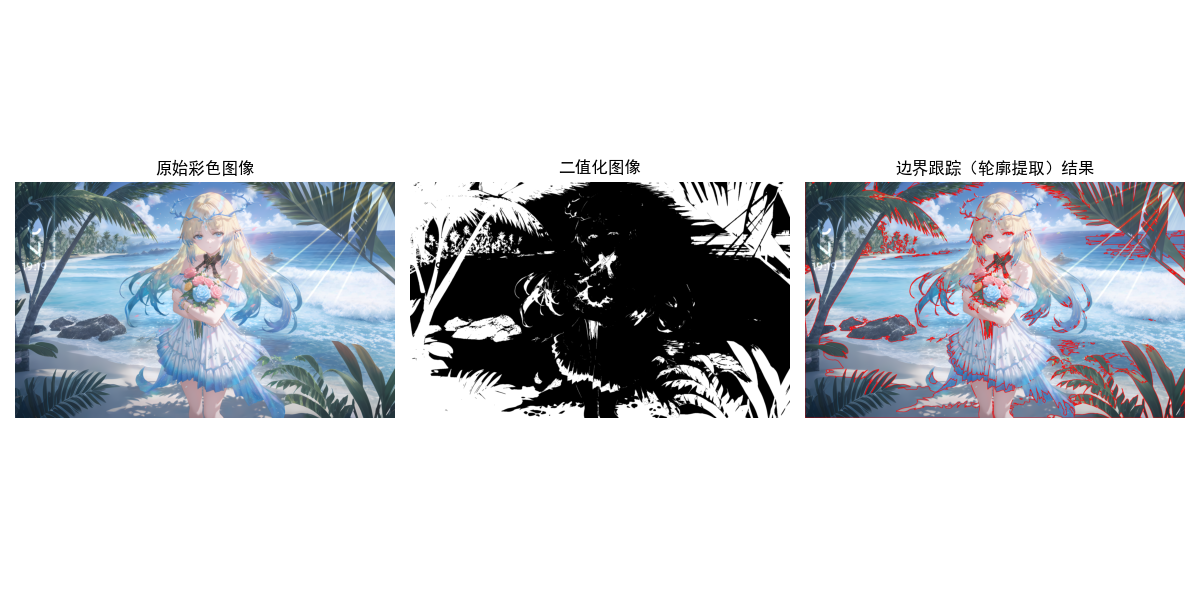 边界跟踪(也叫轮廓提取)是从二值图像中找到目标物体边界像素的过程,OpenCV 中提供了findContours函数实现该功能。