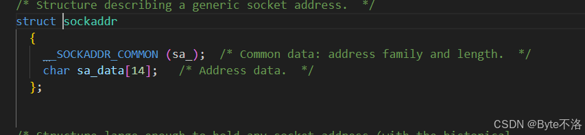 总而言之就是因为C语言没有多态,所以只有通过这样的方式实现,sockaddr 是 socket 接口中的通用地址结构,用于统一不同协议族的函数参数;而 sockaddr_in 等具体结构体才是真正用于存储 IP、端口等地址信息的实现。