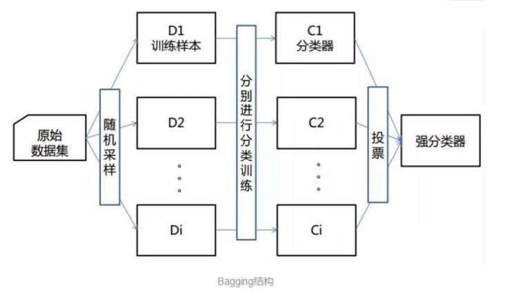 Bagging方法:并行训练多个独立的基学习器,通过投票/平均的方式输出结果,核心是降低模型方差,代表为随机森林;