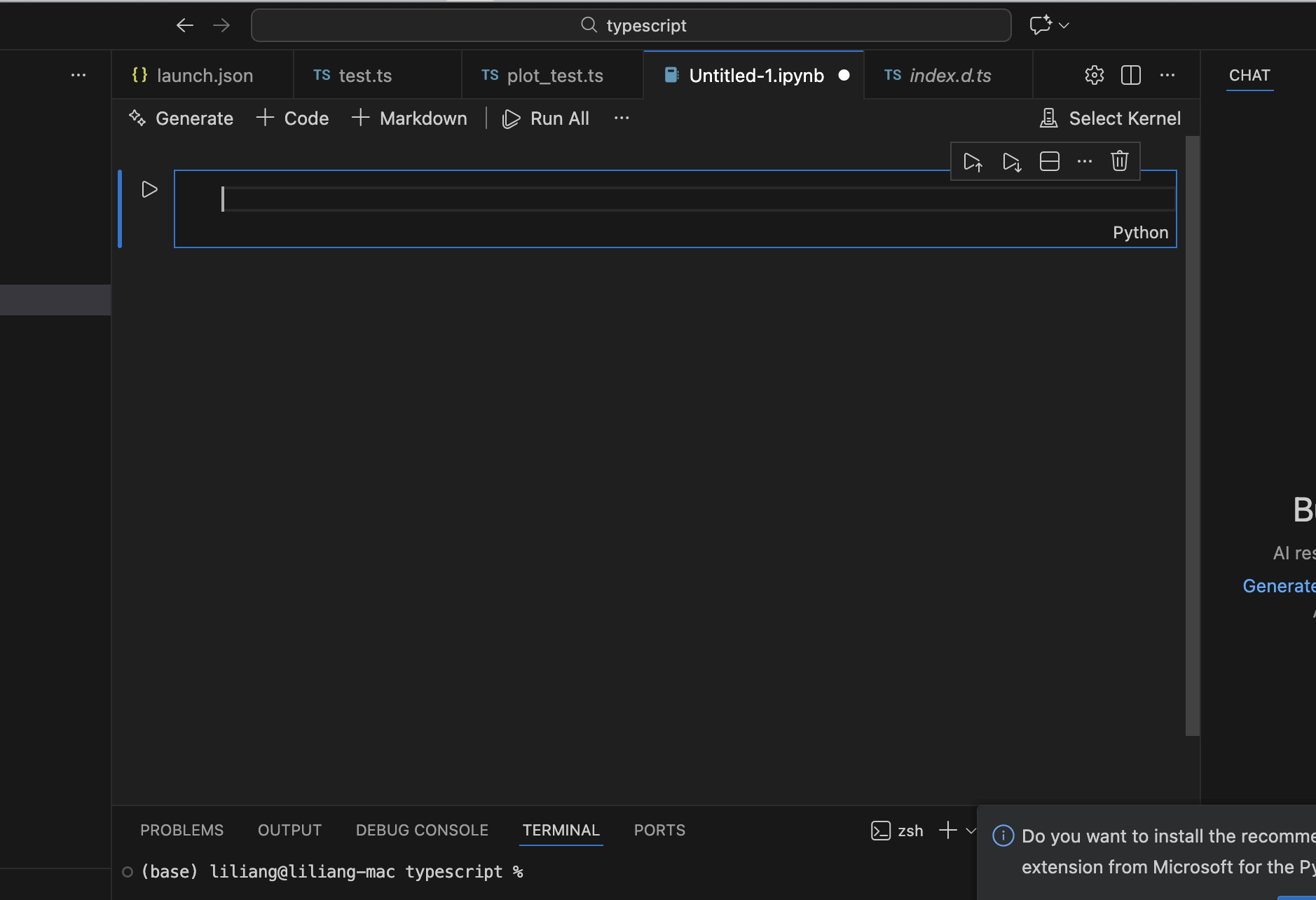 将jupyternode的语言从python切换为typescript,因为这里要使用typescript画图。