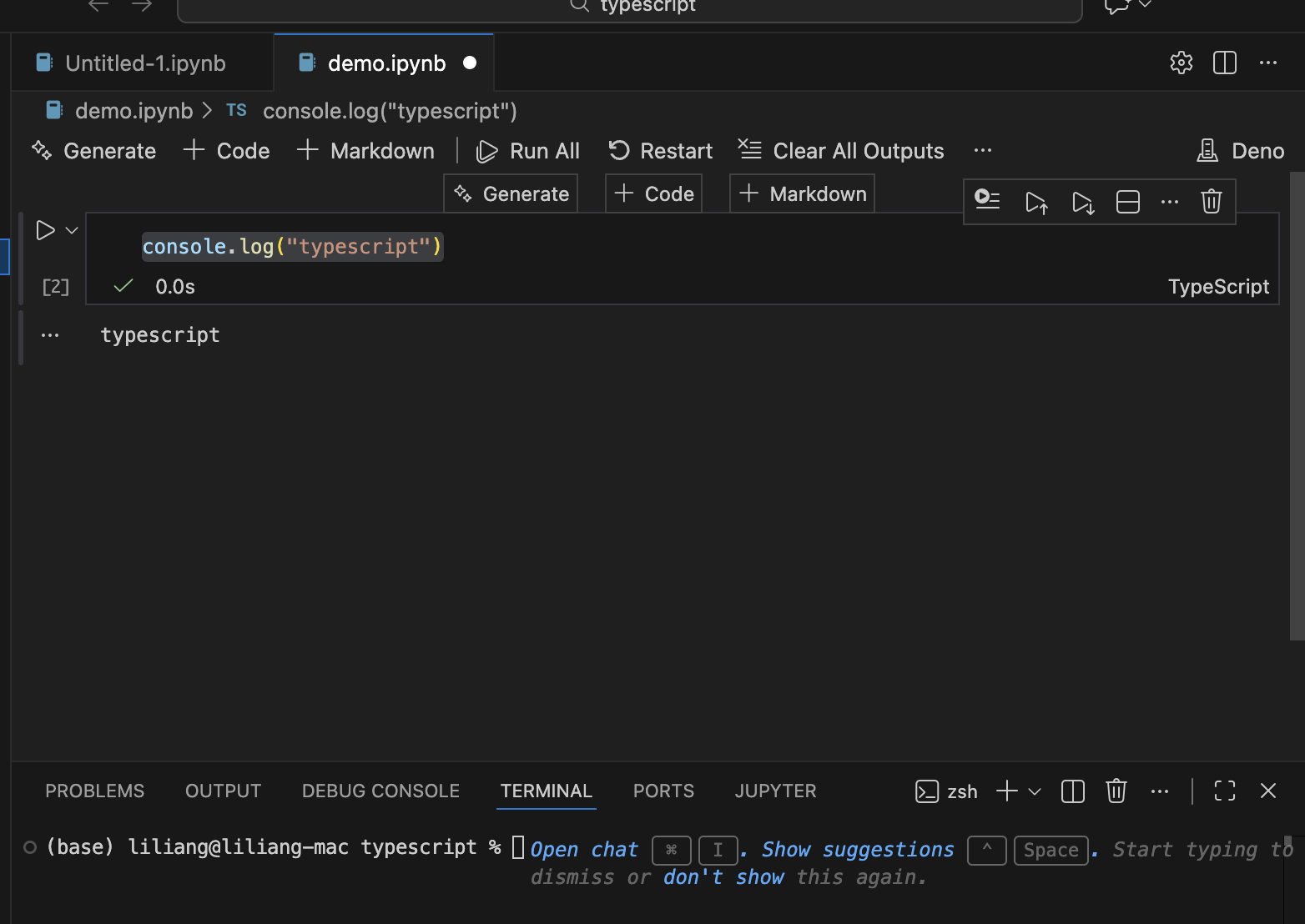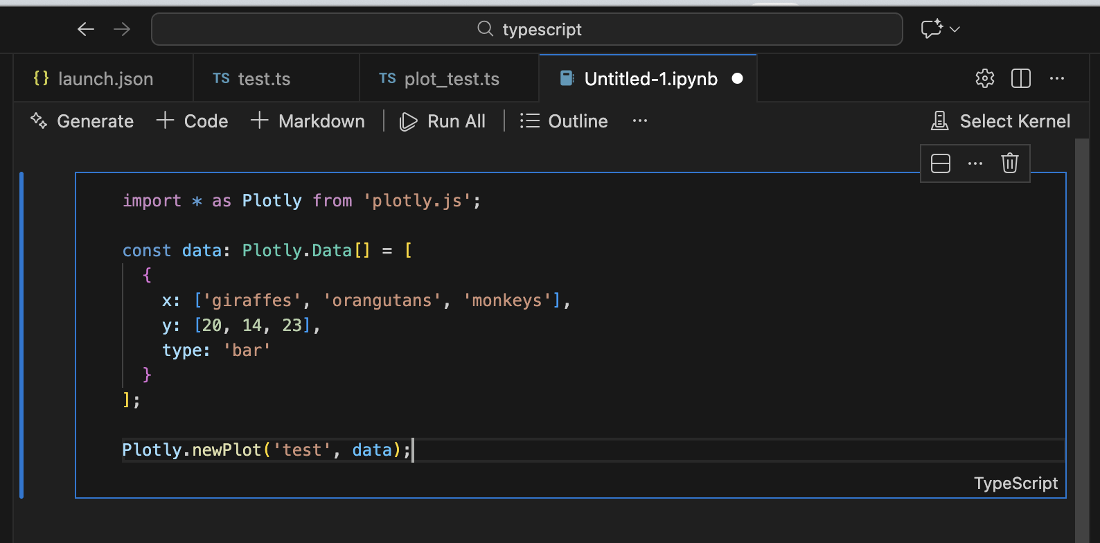 在上述demo.ipynb中,首先运行普通ts代码,示例如下