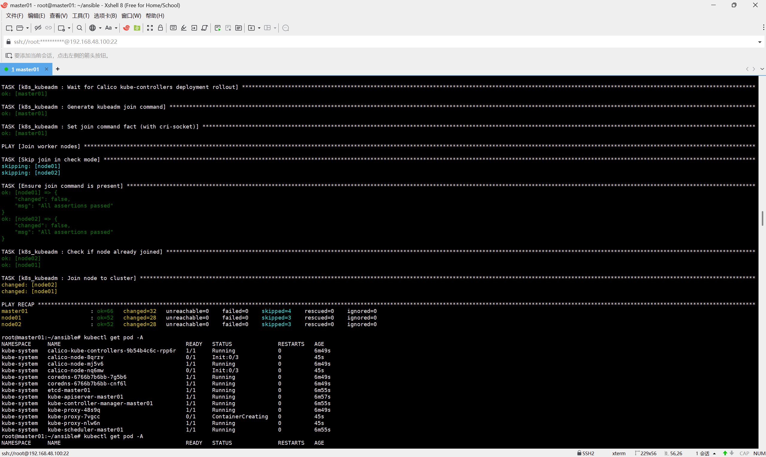 当 ansible-playbook k8s-cluster.yaml 执行完成后,你可以在 master 上验证: