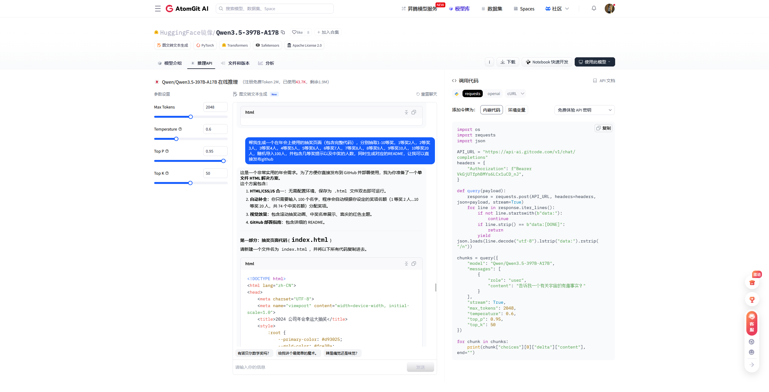 我在 AtomGit AI 平台 向最新发布的 GLM-5 模型提出具体开发需求: