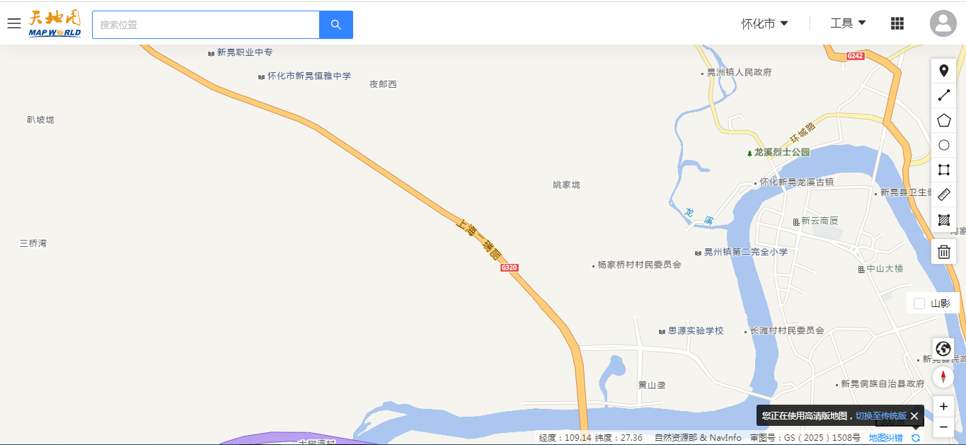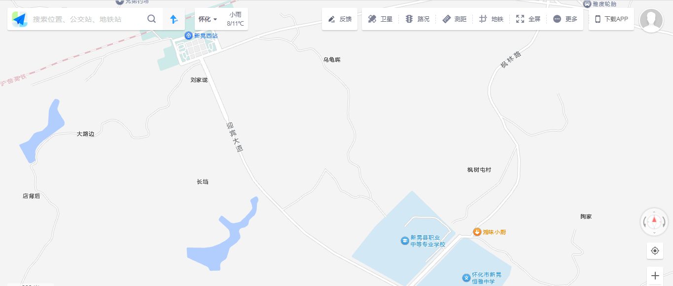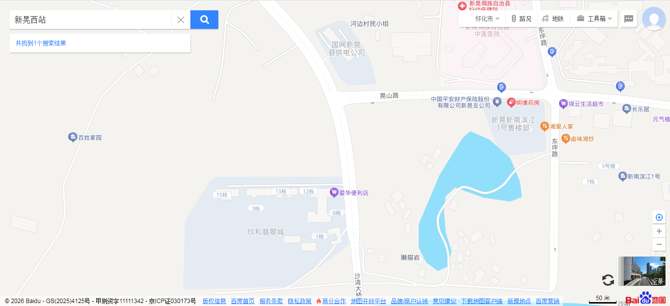 本次实测采用“线上网站查看+实地核对+属地官方网站查验”结合的方式,分别打开各地图的网站,定位至新晃西站至沙湾大桥全路段(起点:新晃西站,终点:沙湾大桥),查看道路名称标注、道路走向匹配、周边POI关联等情况,实测结果如下: