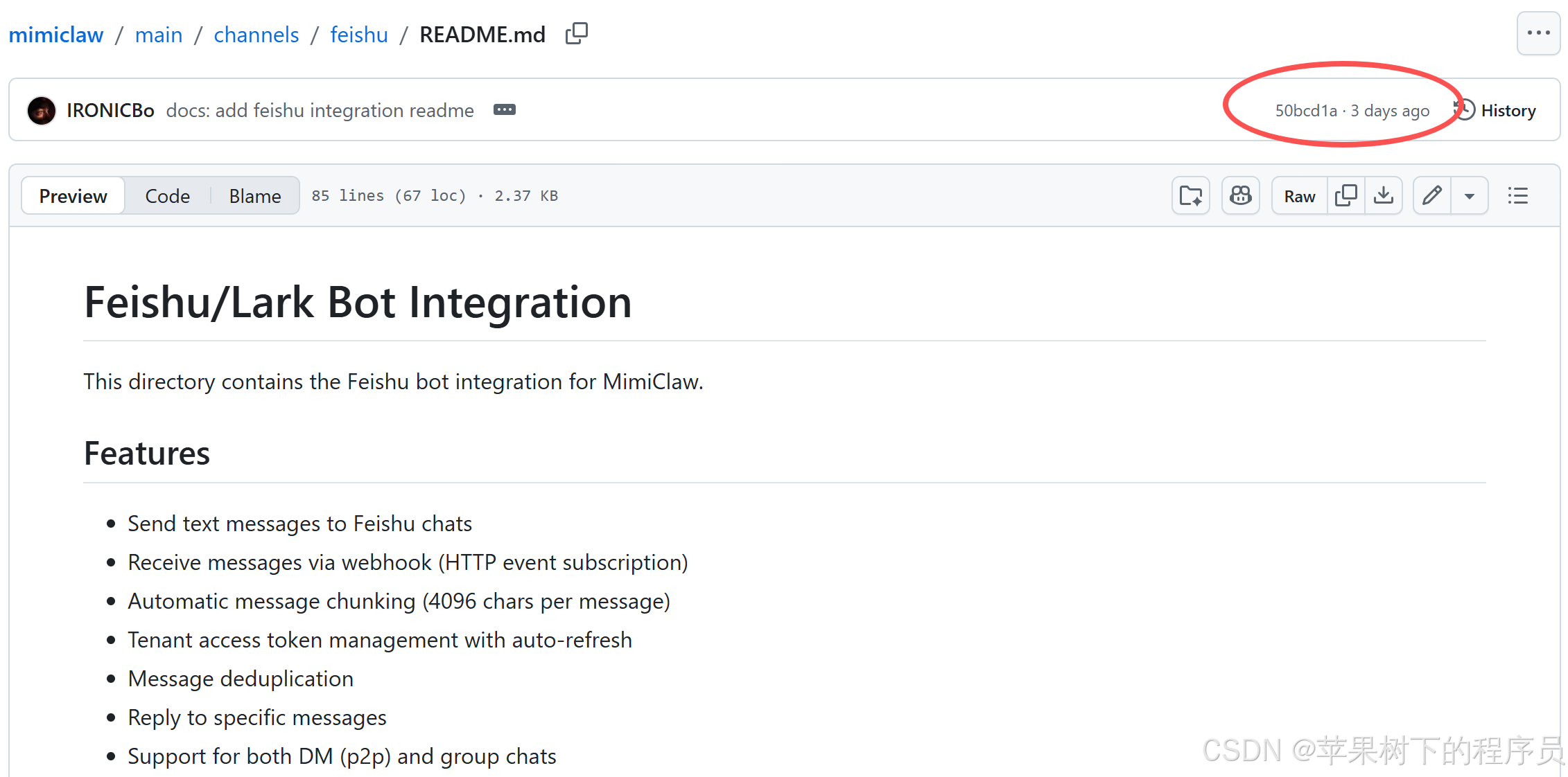 最近mimiclaw火爆,其开发团队也在密集更新,我看3天前已经可以用“飞书机器人”对话交互了。