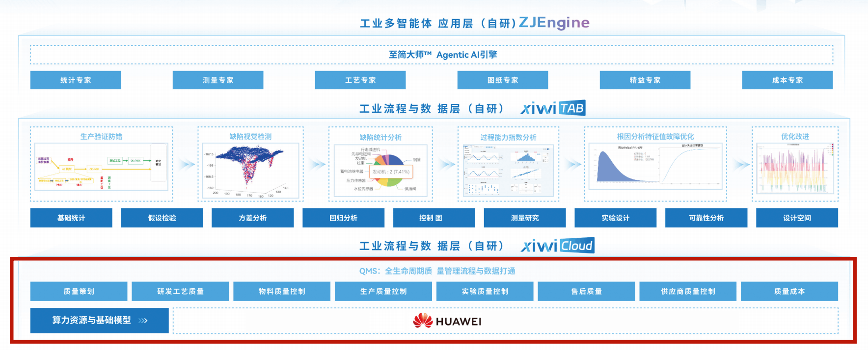 基于对自身核心需求与发展痛点的深刻洞察,希维科技引入华为云与帆软BI的优势能力,持续优化全生命周期质量管理方案,并通过全栈自研的垂域工业流程数据+工业分析算法+工业智能体,打造新一代工业AgenticAI平台。具体解决方案如下: